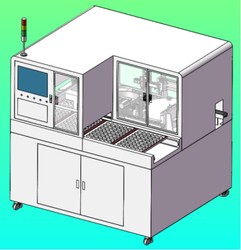 2、震動盤將產(chǎn)品送出,同時輸送機將料盤送入取料工位